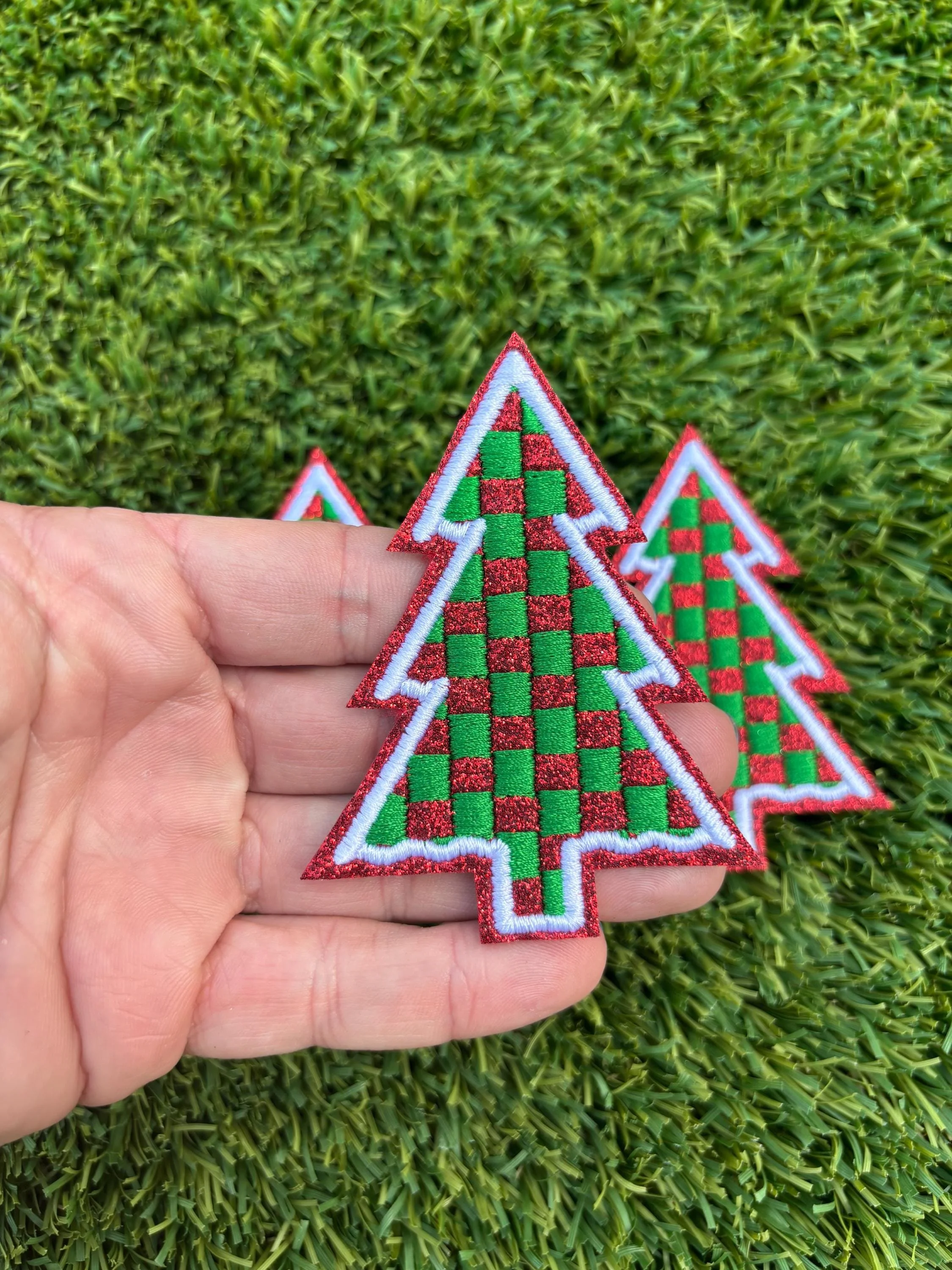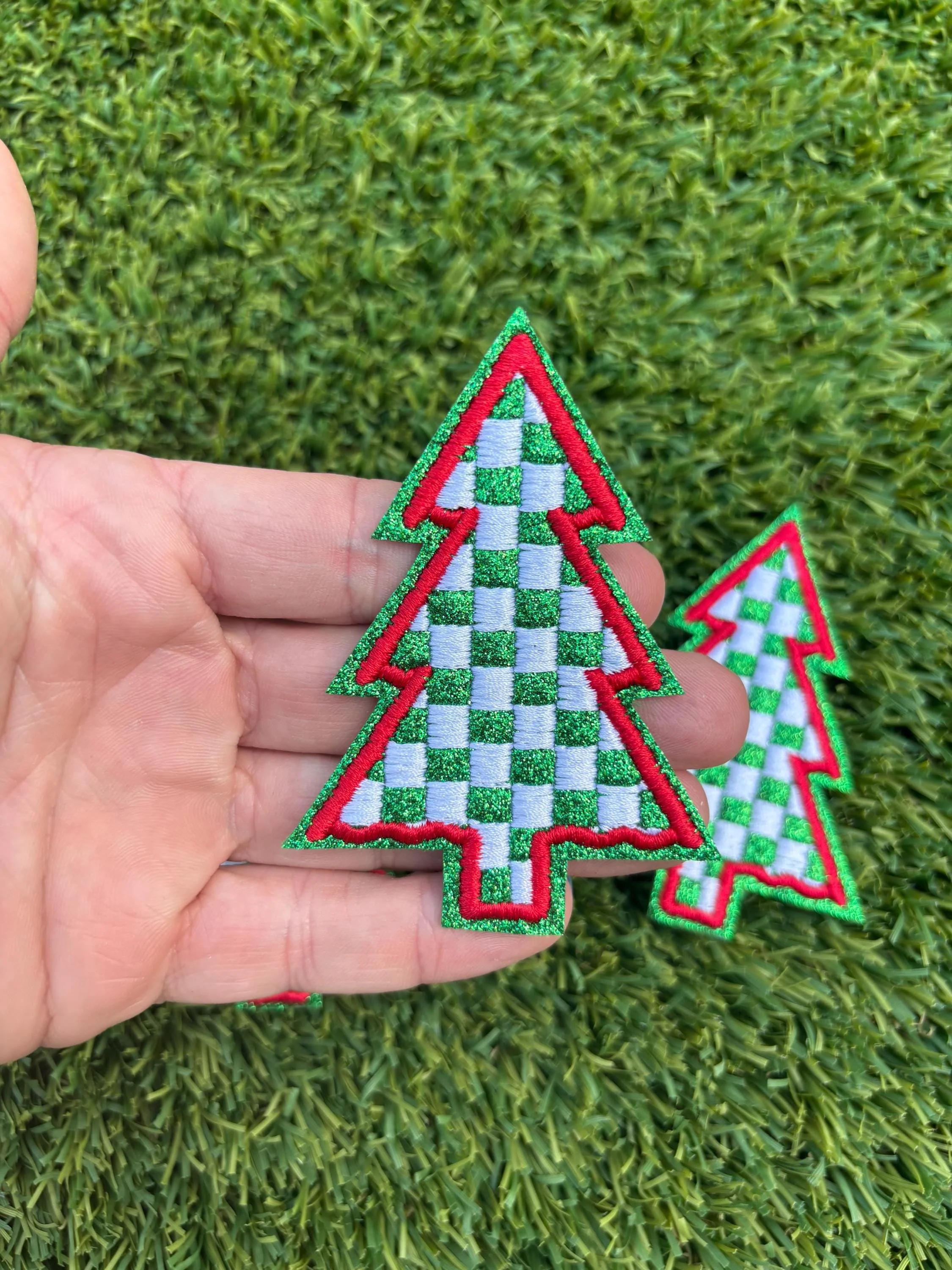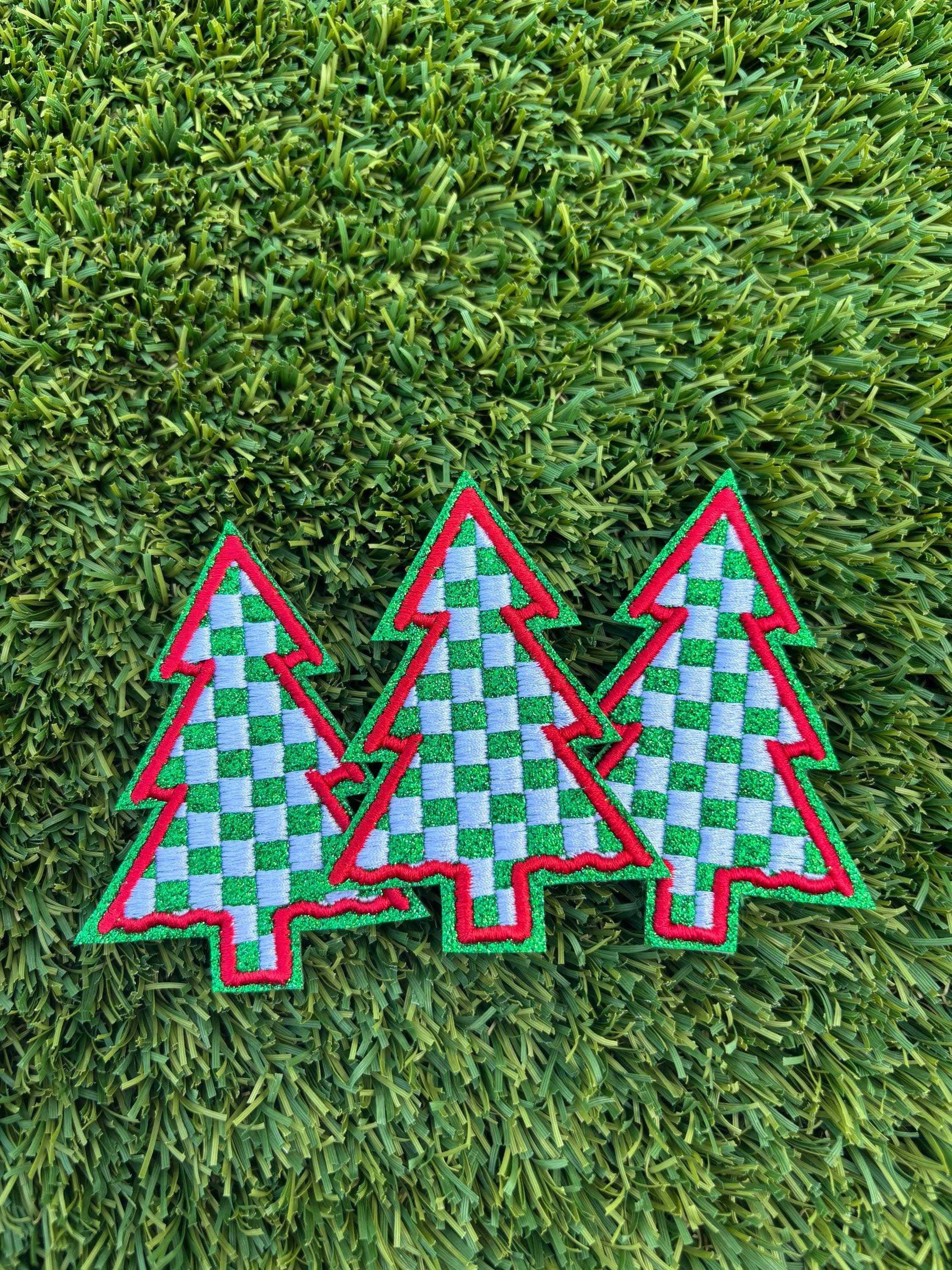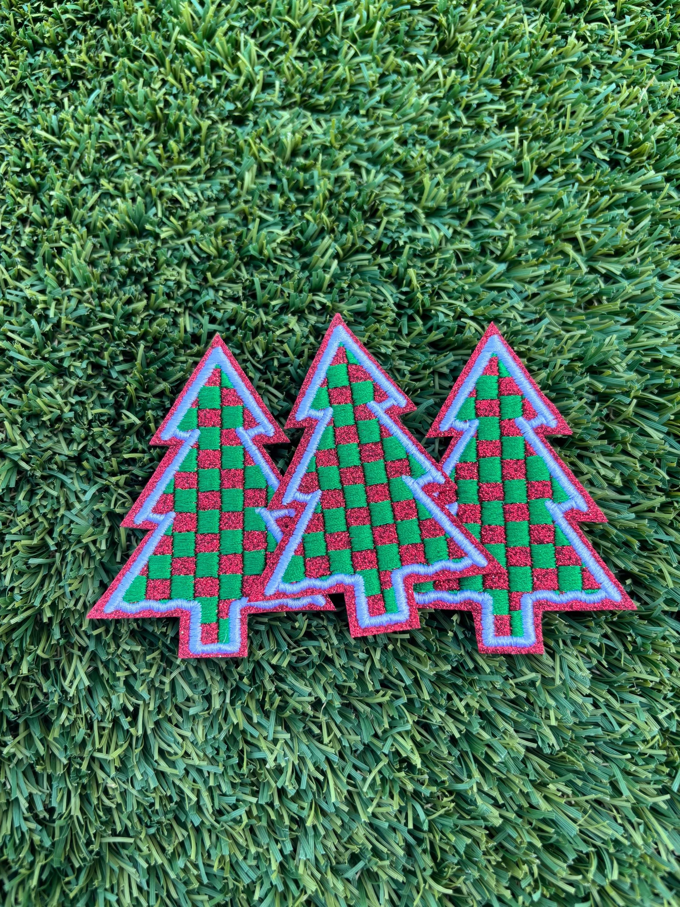 Checkered Christmas Tree Glitter Embroidered Patch